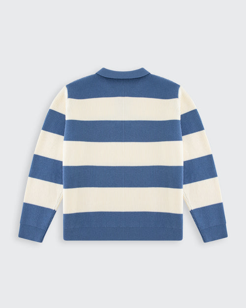 Cool-weather classic with coastal charm. The Steel & Cream Lando Knit blends timeless stripes with a textured knit that feels as good as it looks. With clean blue-and-white contrast and subtle embroidery, it’s the kind of shirt that makes casual feel premium.
