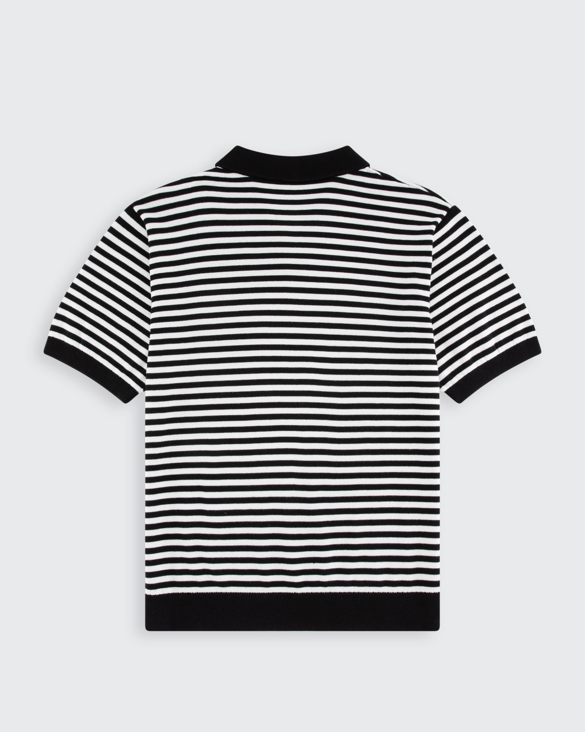 Striking contrast. Everyday cool. The Black & Cream Milton Striped Polo brings clean lines and bold energy to your casual rotation. With crisp white stripes, a sharp V-neck collar, and subtle chest branding, it’s built for warm days and confident style.
