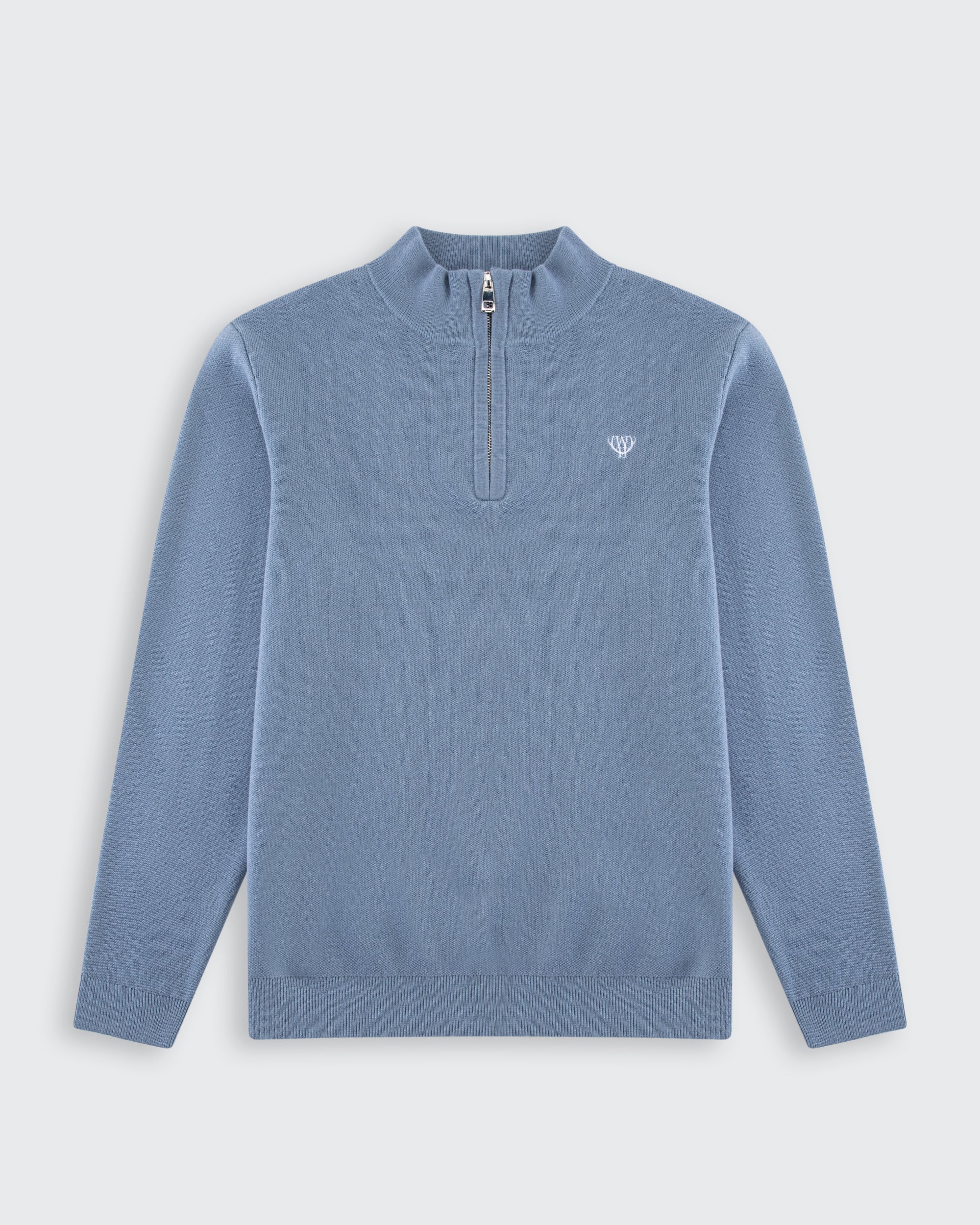 Meet your new go-to layer — sleek, soft, and built for effortless style. Steel Blue Huxley Quarter Zip is made from premium knit fabric that feels smooth against the skin and keeps you cozy all day. The raised collar and subtle chest emblem add a refined touch that works from casual coffee runs to crisp office days.