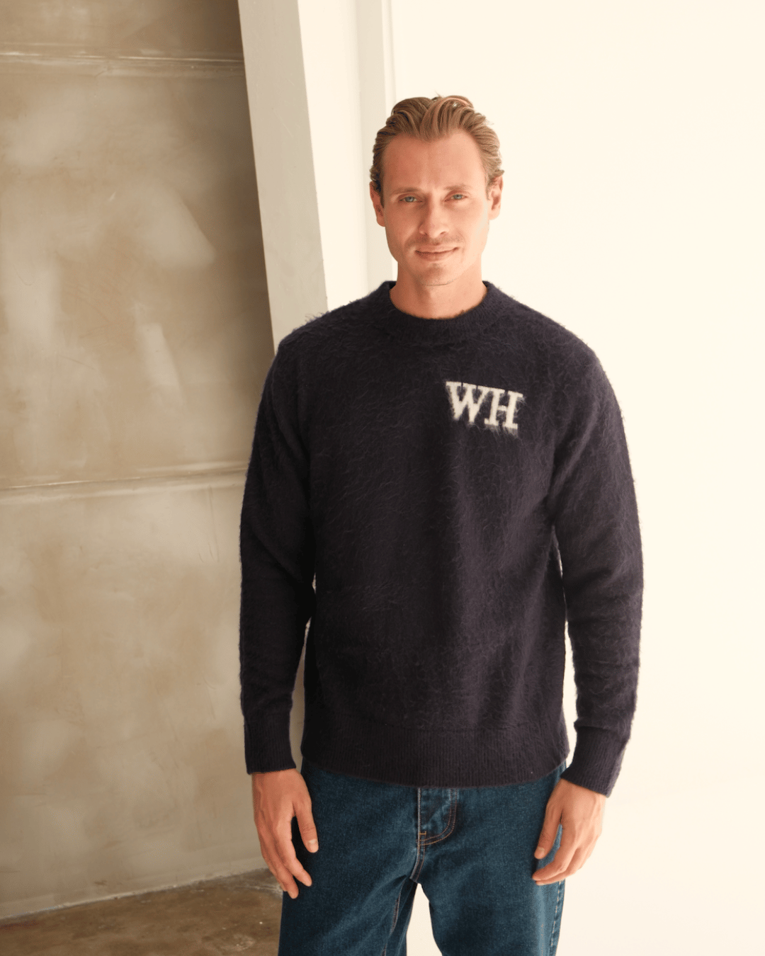 Crafted in a deep navy tone with a soft brushed texture, the Navy WH Crewneck delivers a clean, elevated look. Finished with a bold cream WH chest detail, it’s a modern essential for those who want comfort with a luxury feel.